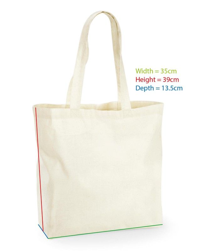 ·170 g/m² ·100% algodón reciclado ·Se puede llevar en la mano o al hombro ·Capacidad: 18 litros ·Dimensiones: 35 x 39 x 13,5 cm